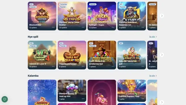 | Programvareleverandører (større partnere) | NetEnt, Play’n GO, Pragmatic Play, Evolution Gaming, Microgaming, Red Tiger |